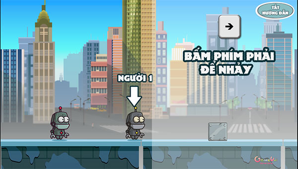 Bấm phím mũi tên trái để nhảy, điều khiển người máy thứ hai.