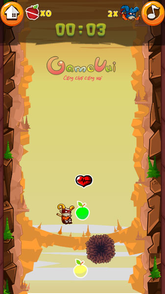 Samurai leo tường - Thể loại game leo tường rất hay và dễ chơi trên GameVui. Để chơi game Samurai leo tường, bạn bấm chuột để nhân vật Samurai nhảy từ tường bên này sang bên kia, tránh khỏi những lưỡi cưa khổng lồ, những quả bom lửa bay lượn và thu thập trái tim cũng như các loại hoa quả để tăng số điểm.