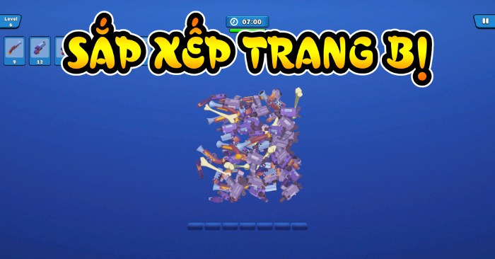 Sắp xếp trang bị - là trò chơi giải đố hấp dẫn, nơi người chơi sắp xếp và hợp nhất 3 trang bị giống nhau để loại bỏ chúng và mở rộng kho vật phẩm của mình. Mỗi màn chơi yêu cầu người chơi suy nghĩ nhanh, quan sát tốt và đưa ra lựa chọn chính xác trong thời gian giới hạn để hoàn thành thử thách. Độ khó sẽ tăng dần qua từng cấp độ, buộc người chơi phải kết hợp tư duy logic và phản xạ linh hoạt để tạo ra những combo hiệu quả. Với đồ họa 3D sinh động, nhiều mẫu vũ khí độc đáo và lối chơi gây nghiện, trò chơi mang đến cảm giác vừa căng não vừa giải trí qua từng lượt chơi!