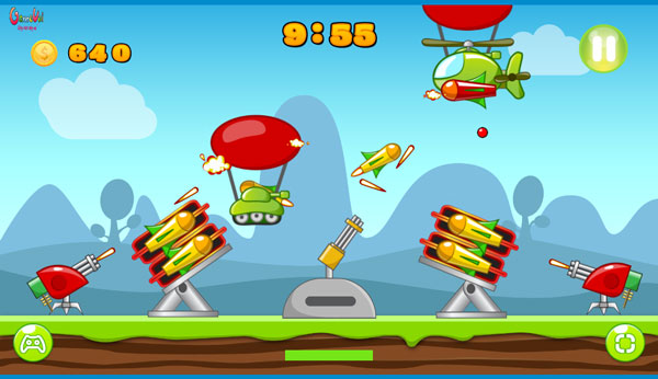 Siêu pháo phòng thủ - Trong trận địa khốc liệt đến từ những chiếc máy bay ném bom, xe tăng nhảy dù của quân địch, bạn phải làm sao để giữ vững phòng tuyến GameVui? Tất cả những thử thách đó đều có trong game Siêu pháo phòng thủ, sử dụng 3 vũ khí siêu hạng nặng là pháo mini, tên lửa và súng máy, chiến đấu tiêu diệt kẻ địch. Dùng tiền thưởng có được để nâng cấp và tiếp tục chiến đấu với quân địch bất kể ngày đêm.