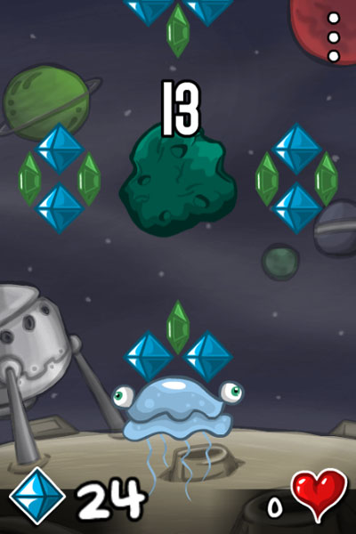 Sứa nhặt kim cương - Game giải trí về kim cương trên GameVui, lần này các bạn sẽ không phải xếp kim cương để ghi điểm như các trò Jewel thông thường khác, mà thay vào đó bạn sẽ điều khiển 1 chú sứa di chuyển sang trái phải để thu thập những viên kim cương, viên ngọc đang rơi từ trên xuống. Lưu ý là bạn sẽ phải tránh khỏi những hòn đá và mua thêm vật phẩm để hỗ trợ quá trình chơi.