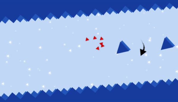 Để hoàn thành thử thách trong game Tam giác chạy trốn, người chơi bấm chuột để điều khiển hình tam giác đen.