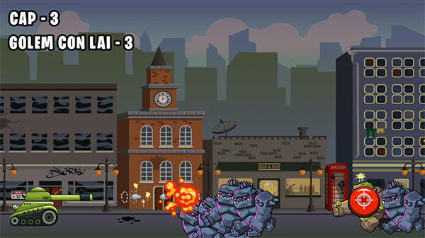 Tank diệt địch là một game bắn tăng cực kỳ thú vị trên Game vui. Những con quái vật Golem tràn vào thành phố mỗi lúc một đông, bạn hãy điều khiển xe tăng bắn hạ tất cả lũ quái vật gớm ghiếc đó.