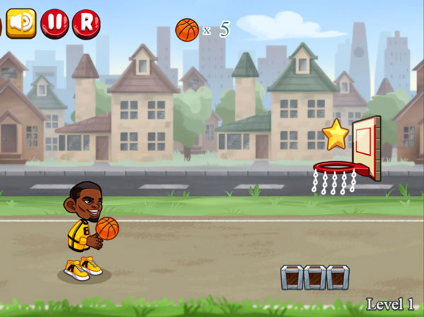 Tập luyện bóng rổ - Game thể thao chơi Bóng rổ với nhân vật chính là 2 bạn nam và nữ tập ném bóng vào rổ từ khoảng cách xa và các vật cản để đạt điểm tối đa 3 sao.