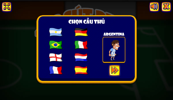 Trong game Tập sút phạt, có 8 mẫu cầu thủ để bạn chọn lựa theo sở thích.