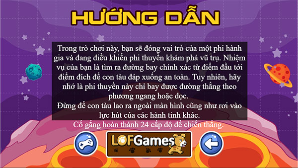 Thám hiểm không gian là một game lái phi thuyền, game phiêu lưu và game trí tuệ cực kỳ thú vị trên Game vui. Trong Thám hiểm không gian, người chơi sẽ có cơ hội trở thành phi hành gia chuyên nghiệp và thực hiện sứ mệnh điều khiển con tàu vũ trụ của mình từ điểm xuất phát về đến đích an toàn mà không bị bay ra ngoài màn hình chơi game hay bị các hành tinh khác hút vào. Mỗi lần đưa phi thuyền tới đích, bạn sẽ vượt qua một cấp độ và để trở thành người thắng cuộc, bạn cần phải vượt qua 24 cấp độ khác nhau với độ khó tăng dần.