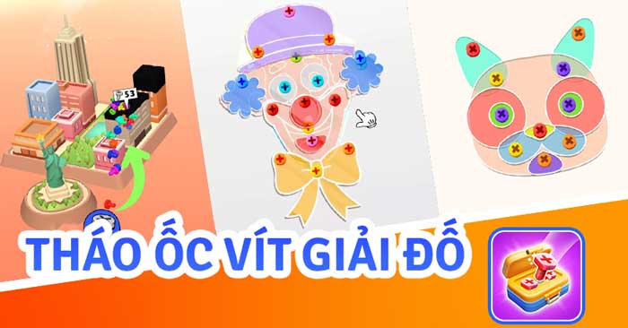 Tháo ốc vít giải đố - Với lối chơi theo kiểu Vặn ốc vít quen thuộc trên GameVui, nhiệm vụ của người chơi tại đây là lần lượt tháo những con bu lông, ốc vít ra khỏi khay và đặt những con ốc vít cùng màu vào khuôn để lắp ráp vào khung hình và ghi điểm. Cứ liên tục như vậy cho đến khi toàn bộ ốc vít trên màn hình được tháo gỡ hoàn toàn và hoàn thành thử thách! Và nếu gặp khó khăn trong lúc đang chơi, hãy sử dụng những vật phẩm hỗ trợ như: nam châm, thêm ô trống hoặc búa đập để phá vỡ tấm chắn!