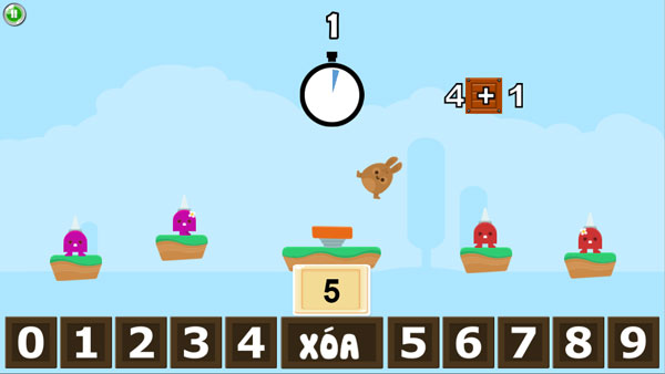 Sẽ có các phép tính rơi từ trên xuống, và bạn phải chọn đáp án được cho là chính xác ở phía dưới. Sau đó bấm phím Space hoặc Enter để thỏ Dux trả lời. Nếu đúng bạn sẽ ghi điểm, còn nếu sai thì sẽ bị trừ điểm.