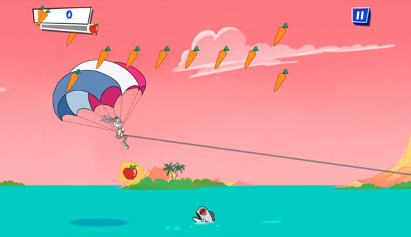 Thỏ Looney lướt sóng - Game hoạt hình về những nhân vật vui nhộn xoay quanh chú thỏ Looney rất hấp dẫn trên GameVui. Và lần này, bạn sẽ giúp thỏ Looney tập môn thể thao lướt sóng để tham gia những cuộc thi khác. Trong game, bạn điều khiển thỏ Looney bằng cách bấm phím Space hoặc bấm chuột để bay lên, thả ra để thỏ Looney hạ độ cao. Và lưu ý, thỏ Looney chỉ cần thu thập những củ cà rốt hoặc quả táo trên đường đi, tránh tất cả những vật cản khác.