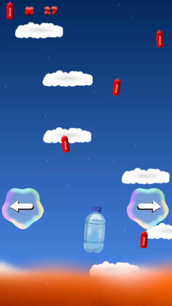Trong game Thoát khỏi dung nham, các bạn bấm 2 phím mũi tên trái phải để chai nước nhảy lên các đám mây, tránh khỏi dung nham phía dưới nhé.