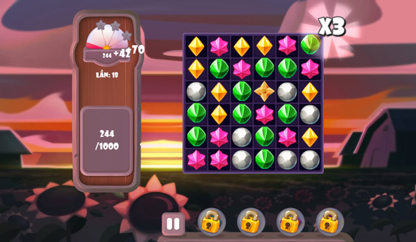 Tìm kim cương - Game giải trí xếp hình kim cương quen thuộc với các bạn. Với cách chơi đơn giản, hấp dẫn, nhiệm vụ chính của bạn là xếp các viên kim cương thành các hàng dọc hoặc ngang, từ 3 viên giống nhau trở lên là ghi điểm.
