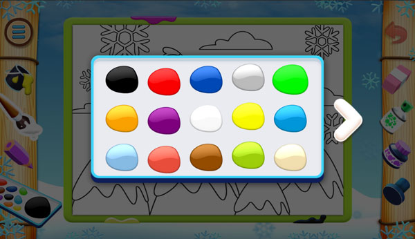 Tô màu mùa đông - Game dành cho trẻ em về chủ đề tô màu trên GameVui. Trong game Tô màu mùa đông, các bạn sẽ có dịp trổ tài hội họa với chú Hà mã dễ thương trong những bức hình có sẵn để vẽ thêm chi tiết hoặc tô màu.