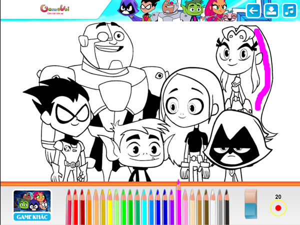 Game Tô màu Teen Titan Go có thể chơi trực tuyến trên điện thoại di động Android, iOS...