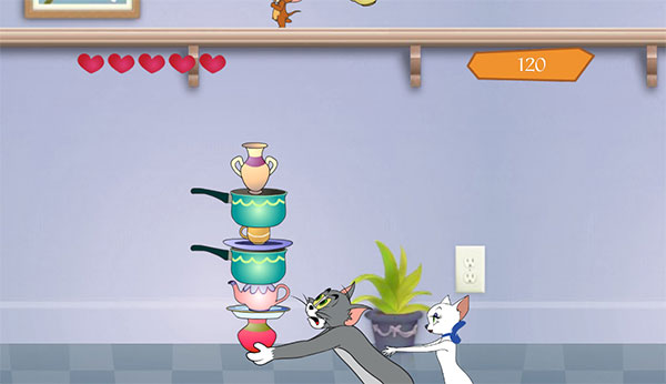 Di chuyển mèo Tom hứng tất cả những đồ vật rơi.