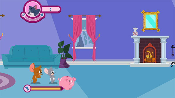Chạm để làm chậm Jerry và Nibbles trước những vật trở ngại để tránh gây tiếng ồn đánh thức mèo Tom.