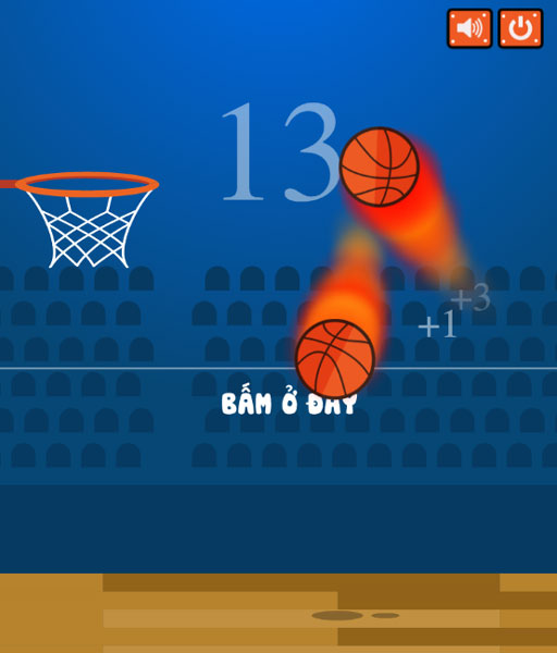 Bạn lưu ý là ở phần giữa màn hình có đường kẻ ngang màu trắng nhạt, khi bóng tiếp xúc với đường kẻ đó thì bấm chuột thì mới có tác dụng tung quả bóng rổ lên cao nhé. Hãy cố gắng ghi nhiều điểm nhất có thể, lưu điểm và gửi điểm cho GameVui, so tài với nhiều người chơi khác.