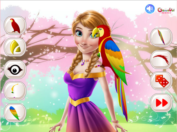 Vật nuôi của Anna - Ice Princess And Cute Parrot là một trong những game bạn gái rất hay và cực kỳ hấp dẫn trên Game Vui. Chú vẹt dễ thương có bộ lông xinh đẹp và biết một vài từ, nó có thể thay đổi màu lông theo tâm trạng và nhu cầu. Trong game các bạn hãy làm đẹp cho chú vẹt và giúp Anna chọn ra những trang phục đẹp nhất cho bữa tiệc lớn vào cuối tuần. Bằng sự sáng tạo của mình các bạn hãy giúp Anna trở nên xinh đẹp, nổi bật nhất trong bữa tiệc này nào!