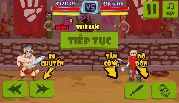 Trong game Võ sĩ giác đấu Craigen, các bạn di chuyển bằng phím mũi tên trái phải, tấn công và đỡ đòn bằng cách bấm chuột vào phím tương ứng trên màn hình.