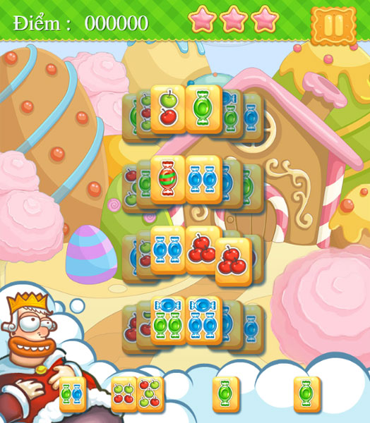 Vua kẹo ngọt - Tiếp nối những trò chơi về chủ đề Kẹo ngọt - Candy trên GameVui, game Vua kẹo ngọt lần này là sự kết hợp giữa lối chơi kẹo ngọt và tìm cặp hình giống nhau. Trong game, nhiệm vụ chính của bạn là tìm các hình viên kẹo ngọt, hoa quả giống nhau để ghép đôi, các hình kẹo ngọt sẽ tự động xuất hiện và nếu bạn không nhanh tay xếp hình thì sẽ bị thua và phải chơi lại.