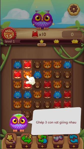 Lối chơi chính trong game Vườn thú vui nhộn dựa trên những trò nối 3 hình giống nhau như series game Xếp hình kim cương trên GameVui. Khi ghép được 3 hình hoặc nhiều hơn trở lên, bạn sẽ nhận được những vật phẩm tương ứng để tăng sức mạnh.
