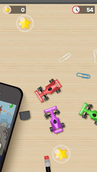 Bạn hãy chú ý nhé, trong game Xe đua tí hon này, nhiệm vụ chính là thu thập các ngôi sao. Và bạn cần tránh khỏi va chạm với những chiếc xe đua khác, vì nếu bạn bị đâm trúng thì sẽ bị mất ngôi sao.