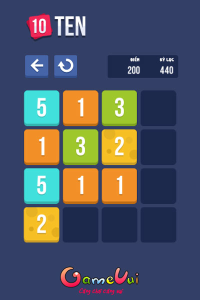 Xếp số 10 - Với lối chơi tương tự như những game 2048 hoặc 1024 trên GameVui, nhiệm vụ của người chơi để ghi điểm cao kỷ lục trong game này là ghép 2 ô bằng nhau lại để tạo thành ô lớn hơn. Cứ tiếp tục như vậy cho đến khi nào xuất hiện ô số 10 là chiến thắng. Game có tính năng lưu điểm và gửi điểm để người chơi so sánh kỷ lục với những đối thủ khác trên GameVui.