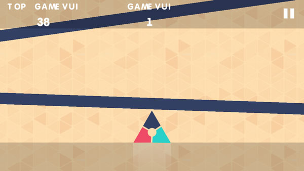 Xoay hình tam giác - Game thuộc thể loại giải trí, đơn giản và rất dễ chơi trên GameVui. Trong game Xoay hình tam giác, người chơi bấm chuột để xoay hình tam giác, làm sao để đổi màu của đỉnh tam giác cho giống với màu của thanh ngang đang rơi từ trên xuống.